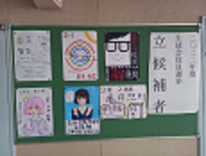 今週月曜日に生徒会役員選挙が公示され、玄関前に各候補者の個性豊かな選挙ポスターが張り出されています。
