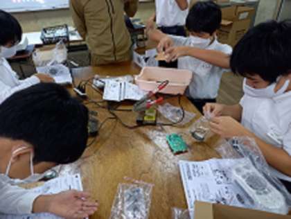 ラディッシュ栽培と並行し、ラジオづくりも始まりました。今日は、基盤に回路を「はんだづけ」していく作業を行いました。最初は、緊張しながら作業していましたが、慣れてくると手際よく「はんだづけ」をしていました。