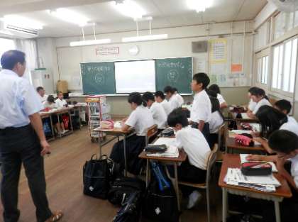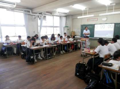 1年生の社会科の授業で、ディベートを行いました。今回のテーマは、「原子力発電について」賛成と反対に分かれて、それぞれの立場から、事前に調べてきた内容なども含めて意見を発表していました。相手の話を注意深く聞き取り、さらに自分の考えを加えて相手に意見を伝える。なかなか難しい内容ですが、賛成・反対ともに活発に意見が出ていました。