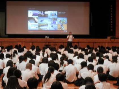 防災という言葉からどうしても震災や火災、津波というイメージが浮かびますが、本日は、川をテーマに災害について考えました。夏場には、水難事故が必ずと言っていいほど発生します。川で遊んでいるときの危険をどのように予知し、災害から身を守るべきなのかについて、天候を予知すること、川の危険な場所を知ること、状況の変化に気づくこと、日常的に準備しておくべきことなどについて学習しました。また、落水した時の救助方法なども確認しました。この夏、決して事故に巻き込まれないように注意し、すばらしい休みにしてください。