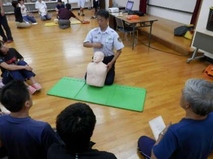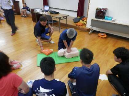 午後1時30分から、防災リーダーに負けじと、もしもの時に備えて、淀川消防署の方に来校いただき、先生方も普通救急救命講習を受講しました。