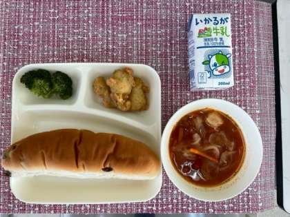 フリッターとは、小麦粉や泡立(あわだ)てた卵白などで作った衣をつけて油であげたもので、ふっくら仕上がるのが特徴です。衣に色がつかないように低温であげます。今日の給食の「白身魚フリッター」は、「たら」を使っています。給食の「白身魚フリッター」は、衣に卵を使っていません。