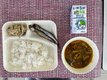 ししゃもは、北海道の太平洋岸にすむキュウリウオ科の魚です。10月中旬(ちゅうじゅん)〜11月下旬(げじゅん)になると、特定の河川に群れを成し、砂の多い川底で産卵します。卵からかえった稚魚(ちぎょ)は、海で回遊しながら1年半くらいかけて成長し、多くのししゃもが産卵のために再び河川をさかのぼります。給食に使われているししゃもは、カラフトシシャモ(カペリン)と呼ばれる魚です。