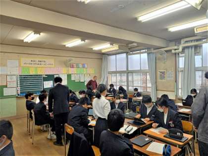 2年生では、12月に実施する京都への校外学習の下調べを行いました。神社やお寺をめぐって昼食場所に間に合うように、パソコンを使って計画を立てています。