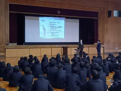6時間目に3年生は、菅公学生服さんに「着こなしセミナー」を開催していただきました。制服は、オフィシャルなものであり、プライベートな服とは分けて考えなければならない。身だしなみの評価は他人がするもの。ほかにも、椅子の座り方やお辞儀の仕方など、高校入試の面接にとても役立つことを教えていただきました。3年生は、12月から入試に向けて面接練習も始まります。今日、教えていただいたことを、しっかり活かしましょう。