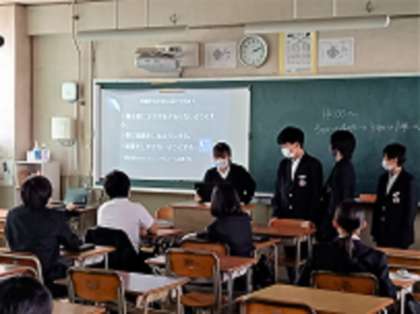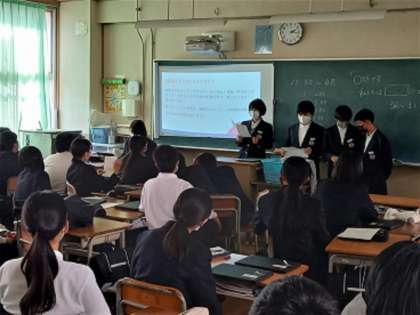 1学期に行った生徒アンケートで「よい睡眠がとれていますか」の問いに肯定的に回答する生徒が少なかったことから、1年生では、どうすれば「よい睡眠がとれるのか」について、〈生活リズム〉〈食事〉〈睡眠環境〉のグループに分かれて調べました。