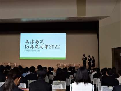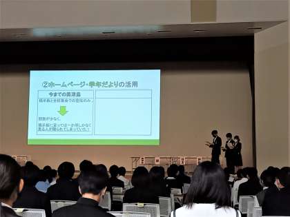 美津島中学校は、全体の2番目に自校での取り組みを発表しました。