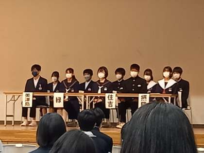 西成区民ホールで行われた「大阪市スマホサミット」に第1教育ブロック代表として本校が選ばれ、代表校として昨年度以降行っているスマホについての取り組みを発表しました。