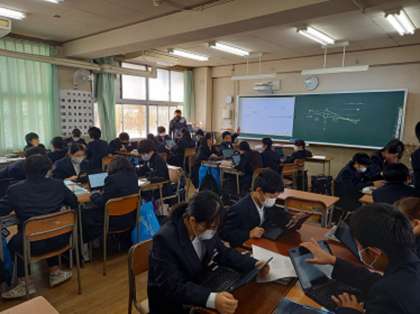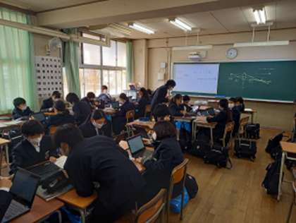 1年生理科の授業です。レンズを通した像や光の屈折についてパソコンを使いながら学習しています。
