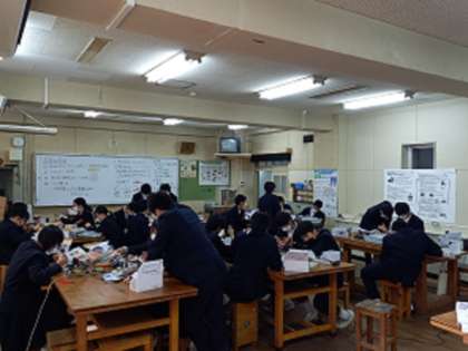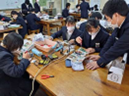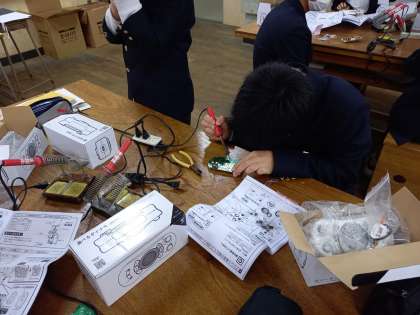 2年生の技術では、ラジオの製作をしています。ほぼ完成に近づいています。