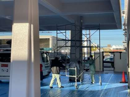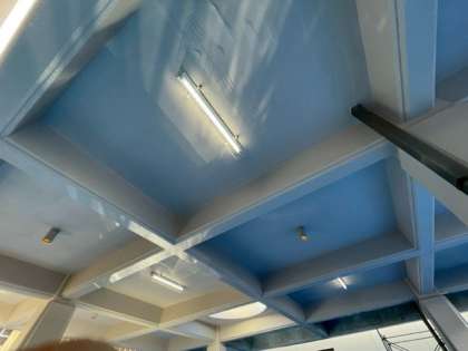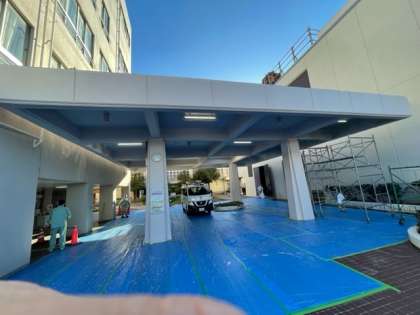 正門を通り抜けたところの天井を真っ白に塗装しています。