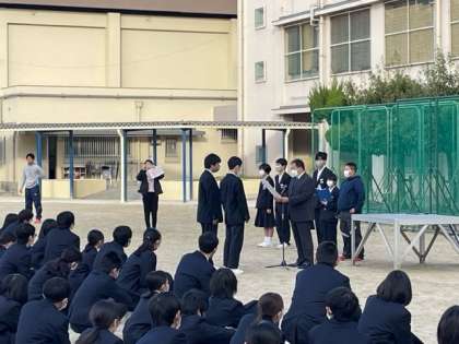 話は変わりますが、先週から3年生は入試に向けて「校長面接」を始めています。質問に対して言葉を選びながら真剣に答えている姿は、とても素晴らしいです。以前、放課後の図書室を利用して勉強をしている3年生から「放課後の図書室の開館時間を延ばしてほしい」というお願いがありました。学びサポーターの方にお願いしたところ快く引き受けてくれました。今日から放課後の図書室の開館時間を夕方の5時30分までと30分延長しますので、3年生だけでなく、1・2年生もぜひ活用してください。