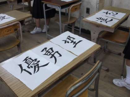 国語科「書写」の講座時間に手本となる字を一字選び、先生の説明の後、コンクール出展に向けて練習を行いました。毛筆ということもあり、各自がそれぞれ力強い字を書いていました。