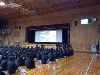 全校生徒が見守る中での発表でしたが、緊張する様子も見せずに素晴らしい発表をしてくれました。発表後は、大きな拍手に包まれ、プレゼンテーションを行う方も、見守る全校生徒も素晴らしく、また一つ美中生のいいところを発見できました。