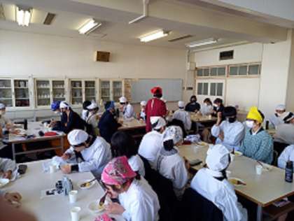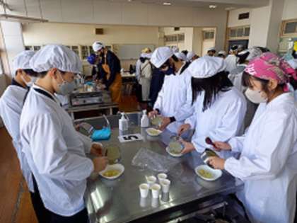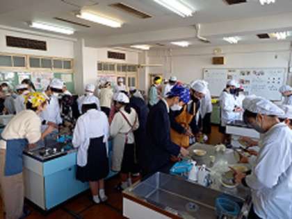 コロナのため本格的な調理実習はできませんが、2年生で「栗きんとん」づくりをしました。サツマイモを茹でたのち、しっかりと裏ごししシロップと混ぜ合わせました。一人一つずつの調理器具を使い感染症対策を講じながらの実習でしたが、出来上がった「栗きんとん」はほんのり甘く上手に裏ごしされていました。