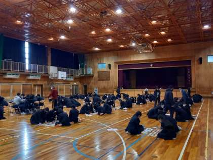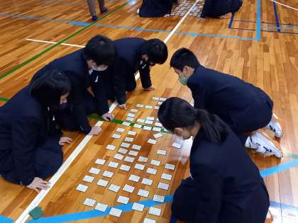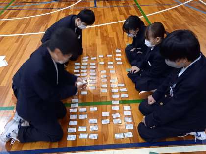 1年生は、5・6時間目に体育館で百人一首大会を行いました。