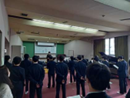 3年生は、3月14日(火)の卒業式に向けて歌の練習が始まりました。今日は、男女それぞれ2グループに分かれて練習しました。写真は、男子の1グループと女子の2グループを合わせて合唱した様子です。