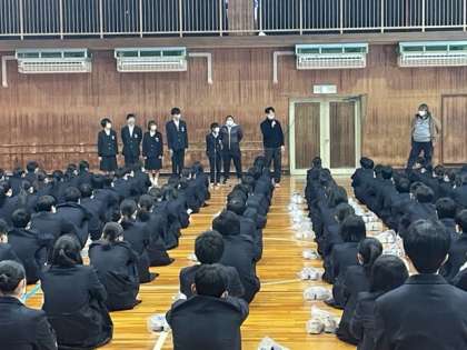 人は出会った時の服装や表情など視覚から入る印象と声を発した時に得る印象と2度相手に対して印象を受けると言われています。服装はみんな整っていますが、あいさつの声は寒くなってきたからか、少し小さかったり、うなづくだけだったりします。しっかり相手に聞こえるようにあいさつをしましょう。