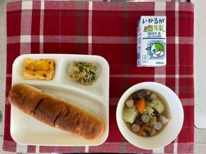 給食の焼きプリンは、卵、牛乳、クリーム、砂糖を混ぜ合わせ、カラメルソースの上に入れ、焼き物機で蒸し焼きにしています。表面にできるほのかなこげ目が特徴です。また、砂糖と水を濃い茶色になるまで煮つめたカラメルソースの香ばしさやほろ苦さも味わうことができます。プリンの語源は、イギリスで生まれた「プディング(蒸したり焼いたりしたやわらかい料理)」といわれています。日本には、菓子(かし)の「カスタードプディング」が伝わり、それを「プリン」と呼ぶようになりました。
