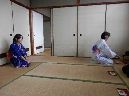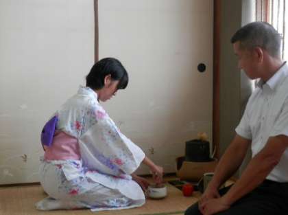 茶道部が、夏のお茶会を開催しました。午前中にお点前の披露として三席を設定し、教職員や生徒が参加しました。お菓子として、部員の手作りによるお饅頭(ドラ焼き)が出されました。