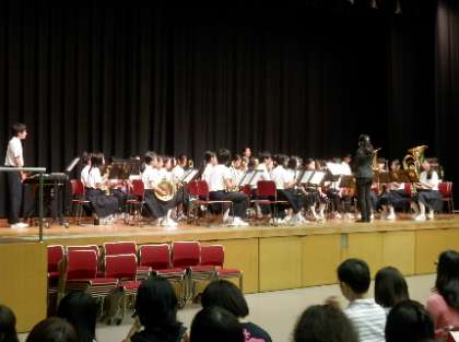 第4ブロックの中学校17校の吹奏楽部が、北区民センターに集まり、演奏会が行われました。本校の吹奏楽部も参加し、ディズニーメドレー(約9分間)を演奏しました。
