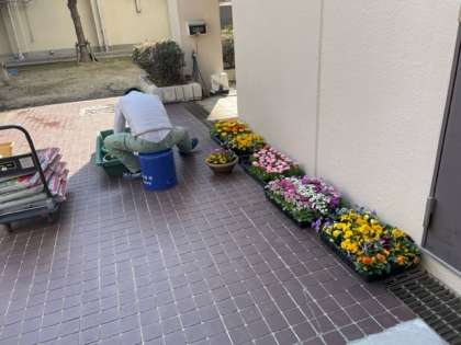 3枚目は卒業式にむけて、花の準備をしています。