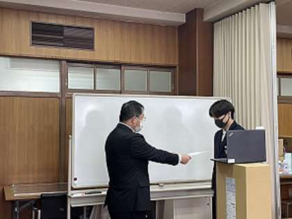 表彰状を受け取った生徒には、校長先生からインタビューが行われました。