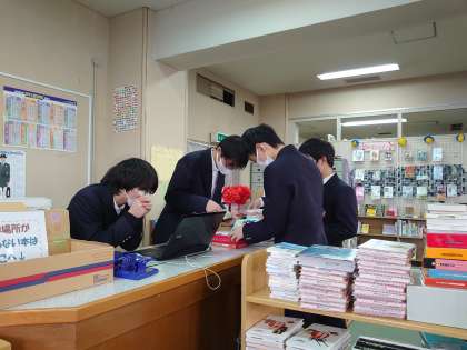 放課後の図書室には、3年生達がたくさん来てくれました。写真は、学習している生徒や、図書の点検を手伝ってくれる生徒の様子です。