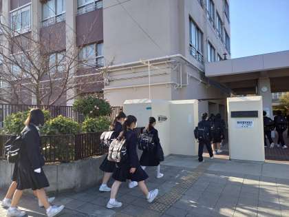 3年生が卒業し1・2年生だけの登校となりました。新入生が入学してくるまで少し寂しいですが、正門を通る生徒からは元気な「おはようございます」の声が聞かれます。中庭や正門の花々も春の陽気に誘われ花を開かせています。