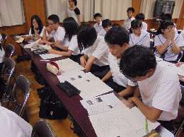 他校の活動報告を聞き、質問を真剣に考える本校のメンバー↓