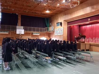 午後から、1年生の音楽発表会が行われました。歌い始めに比べると、どのクラスもぐっと上手に歌えるようになったと音楽の先生からお話がありました。今から2年生での音楽発表会が楽しみです。