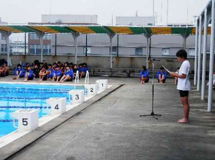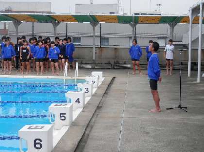 準備体操号令↓ 司会進行↓ 自由形25m↓