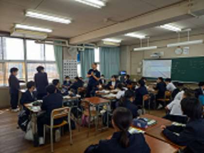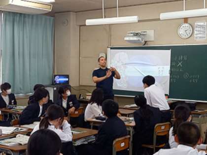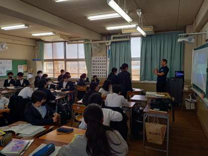 1年生はC-Net(英語補助員)の先生に対して、英語で質問しています。