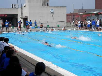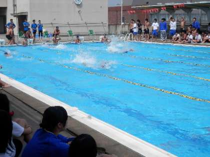 3年生の水泳大会を行いました。快晴の下スタートした大会でした。さすがに3年生、体格も立派になり、しなやかさの中にも力強い、ダイナミックなフォームで白い水しぶきを上げていました。大会の途中、雨が降ったり、大阪880万人訓練に合わせた避難中断があったりしましたが、レース終了後には全体の中から有志が集まり、夏休みから練習に取り組んできたウォータボーイズ&ガールズのシンクロの発表があり、みんなが一つになった瞬間でした。