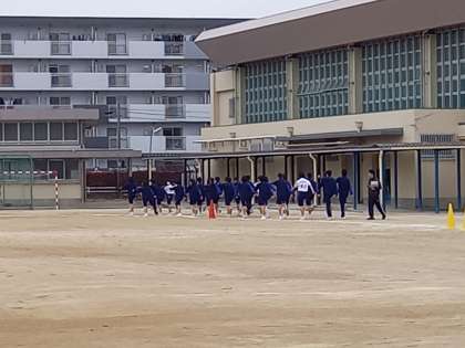 3年生の体育では、学年の初めに行う集団行動に合わせて、体育祭の入場行進の練習が始まりました。