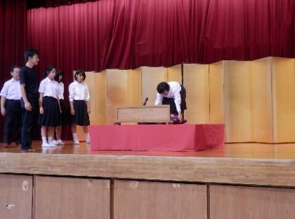 24日(木)の芸術鑑賞会「ちびっこ寄席鑑賞会」に先駆け、寄席の鑑賞方法やその準備、高座に上がって実演する体験をワークショップで教えていただきました。
