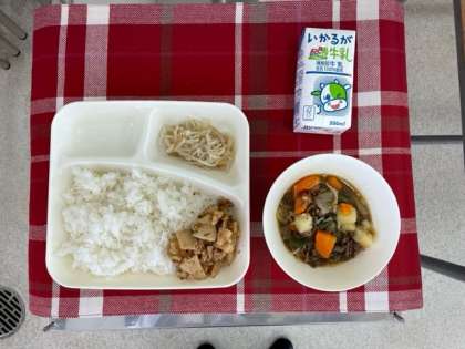 たけのこは、4月から5月にかけてが旬の野菜です。成長が早いため、やわらかく食べられるこの時期に収穫することが多いです。一般的に食用としているものは、「孟宗竹(もうそうちく)」という種類の若い茎(くき)の部分です。今日は『ごまかかいため』に使っています。