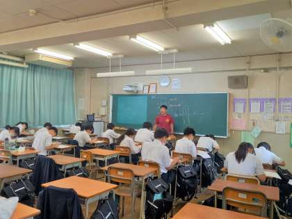 (上)1年生の数学の授業では、1クラスを2つに分けて授業をしています。