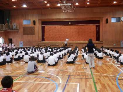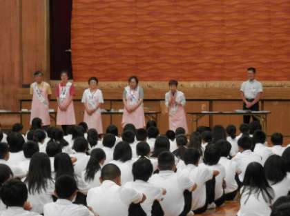6限、1年生では、学活の時間を活用して、食育講座を行いました。淀川区役所から管理栄養士の佐藤さんと双葉会のみなさんに来校いただき、バランスのよい食事をとることの大切さについて講話していただきました。特に、朝食をしっかりとる習慣を身につけることの大切さについて話され、深夜遅くまで起きている人ほど朝食を食べない人が多く、そして、学校生活でも集中力が持続できない等の悪い影響を与えることについて、教えていただきました。9月に実施した1年生へのアンケート調査でも「朝食を毎日食べている」と答えた人が76%で、非常に低い数値になっています。毎日のスタートに当たり、改めて朝食を大切にする意識と習慣を身につけましょう。