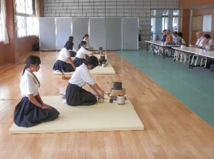 今回、初めての取り組みでしたが、茶道部でお点前を披露しました。