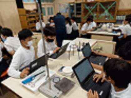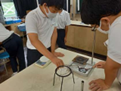 今日は、マグネシウムと酸素が化合するときの金属と酸素の質量について調べました。実験の後は、数値をパソコンに打ち込んでグラフ化しました。