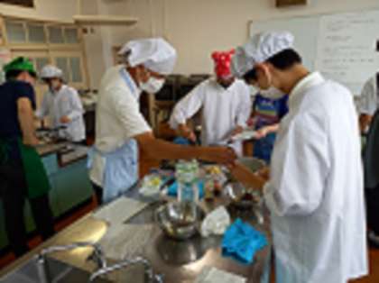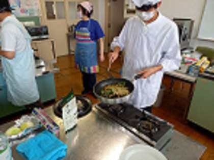 放課後、国際クラブでは調理実習が行われました。今回の調理は「チヂミ」。たくさんの先生方も一緒に参加して手際よく調理していました。