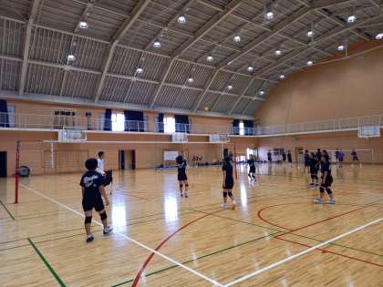 バレー部も東淀工業高校さんを借りて練習しています。2段トスの練習をしています。