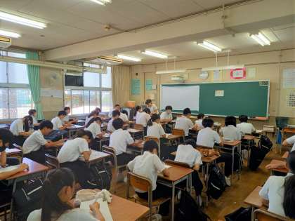 オンラインでの始業式ののち、学級では宿題を集めたり、教育相談に向けたアンケートをしたり、来週の連絡をしたりと各クラスで学活が行われました。