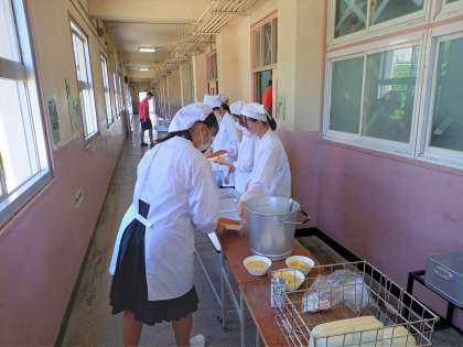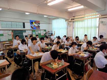 写真は、3年生の給食の様子です。さすがに3年生は、給食の準備・配膳の手際が良く「いただきます」ができています。