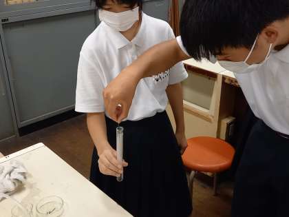 火のついた線香を試験管内に入れると、線香の炎が少し明るくなりました。