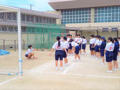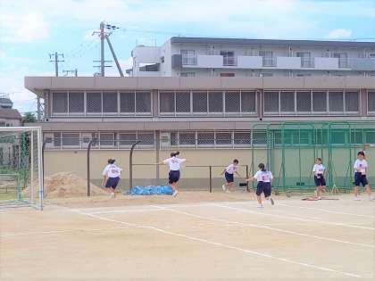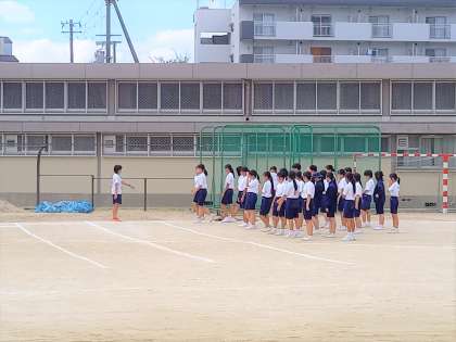 教育実習2週目です。教育実習生の授業が本格的に始まりました。写真は、女子体育走り幅跳びです。