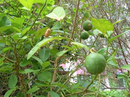 朝晩は、少しずつ暑さも和らいできました。中庭のみかんが、しだいに大きくなってきました。。