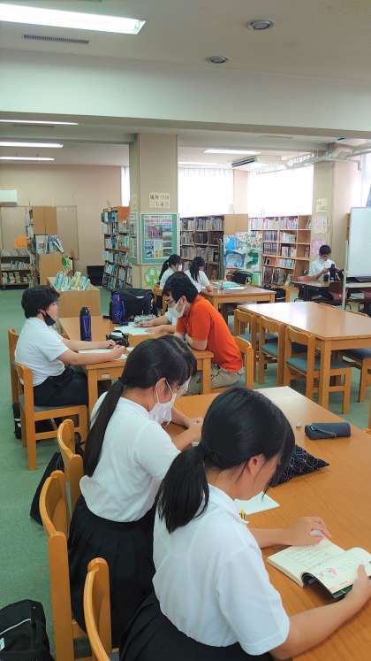今日の放課後は、約20人の生徒が図書室を来室。自主学習や本の返却貸出、おしゃべりなど思い思いに過ごしています。