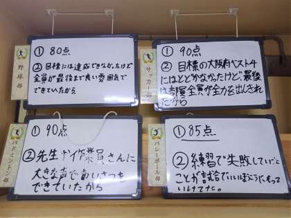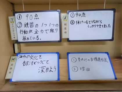 夏休みを終え、部長会議では夏休み前に立てた目標をどれだけ達成できたのかの振り返りを行いました。